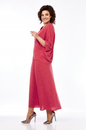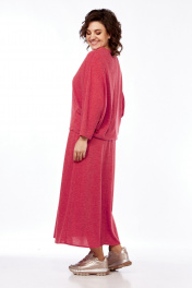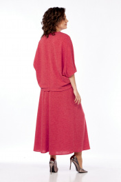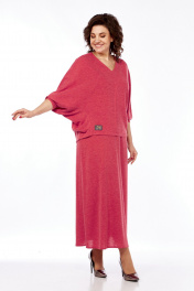 Костюм женский из трикотажа с юбкой и декоративной вставкой Диомант 2020 коралл