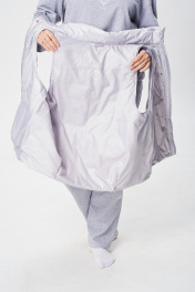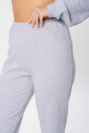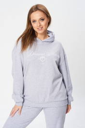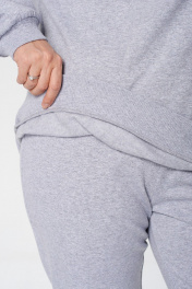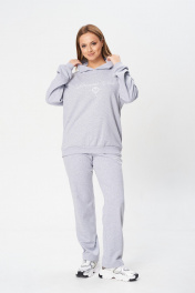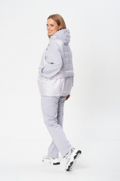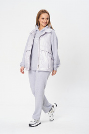 Комплект брючный (кофта+жилетка+брюки). Кофта свободного кроя с притачным манжетом по низу (довяз). Рукав втачной одношовный с притачным манждетом по низу (довяз). Линия плеча спущенная. Сзади капюшон. Брюки прямые, верхний срез обработан поясом с резинкой. Жилетка свободного кроя с центральной застежкой на молнию и планку с кнопками. По спинке кокетка, на нижней части по низу застрочены складки, обработаны карманы с отделочным хлястиком. Воротник-стойка. В качестве отделки используется фурнитура, печать и детали.