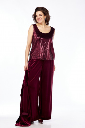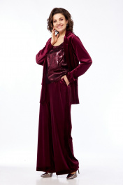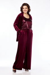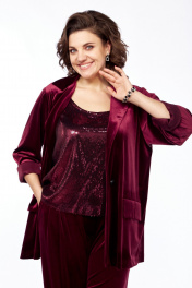 Костюм 3-ка из бархата: жакет, брюки и майка Диомант 2026 бордо