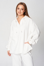 Демисезонный спортивный комплект из трикотажа с капюшоном и карманами Диомант 2039 молочный