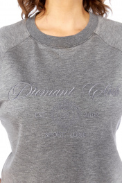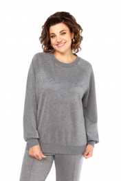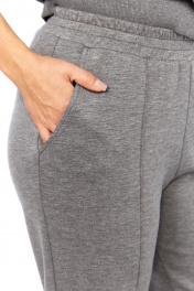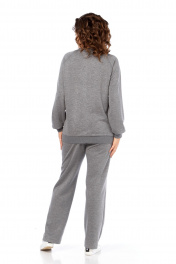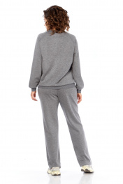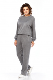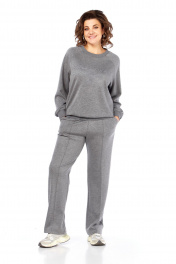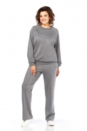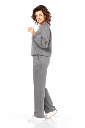 Комплект брючный состоит из кофты и брюк. Кофта свободного кроя с рукавом реглан. По низу рукава и низу изделия отделочный манжет-довяз, горловина круглая с отделочной бейкой (довяз). В качестве отделки используется вышивка. Брюки прямые, верхний срез обработан поясом с резинкой. В боковых швах обработаны карманы. На передних половинках застрочены складки. Длина по спинке 68 см, ширина плеча+длина рукава 73 см. Длина брюк 109 см.