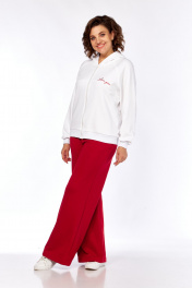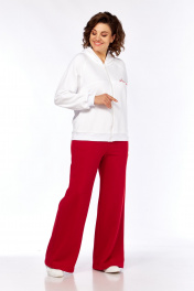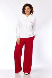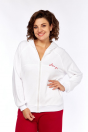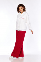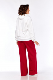 Комплект брючный.Кофта свободного кроя с центральной застежкой на тесьму-молнию. Рукав покроя реглан с притачным манжетом по низу (довяз). По переду и спинке кокетки. Капюшон со средним швом. По низу изделия отделочный пояс (довяз). В качестве отделки используется вышивка. Брюки широкие, верхний срез обработан поясом с резинкой. В боковых швах обработаны карманы. Длина по спинке 64 см, ширина плеча+ длина рукава 72 см. Длина брюк 112 см.