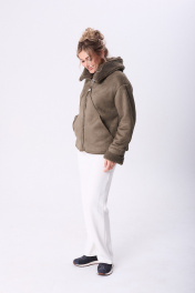 Кардиган женский полуприлегающего силуэта с центральной застежкой на тесьму-молнию. По спинке средний шов, вытачки по горловине. По переду накладные карманы фигурной формы. Рукав втачной 2-шовный с притачным манжетом, спущенная линия плеча. Капюшон с центральной частью и отрезной отделочной деталью по отлету. В качестве отделки используется фурнитура. Длина по спинке 60 см. Длина рукава 62 см. 48 50 52 Длина изделия 60 60 60 Ширина изделия по линии груди 58 60 62 Ширина изделия по линии талии 58 60 62 Ширина изделия по линии бёдер 58 60 62 Ширина спины 49,5 50 50,5 Ширина плеча 18 18 18 Длина рукава 62 62 62 Ширина рукава 21 22 23