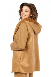 Комплект брючный состоит из кофты, жилетки и брюк. Кофта полуприлегающего силуэта со спущенным плечом, рукав втачной, одношовный. Воротник стойка с застежкой на тесьму-молнию. По боковым швам разрезы. Брюки расширенные книзу, верхний срез обработан поясом с резинкой. В боковых швах карманы. Жилетка свободного кроя со смещенной застежкой на петлю и пуговицу. По спинке горизонтальный рельефный шов на перед, в котором обработаны карманы. Цельнокроенный капюшон с центральной частью. В качестве отделки используется фурнитура. Длина кофты по спинке 69-72 см, длина рукава 54 см. Длина жилетки по спинке 74-80 см. Длина брюк 109-110 см