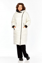 Пальто женское утепленное свободного кроя с ассиметричной застежкой на "молнию". Перед с прорезными карманами с "молнией" и накладными карманами. Правый накладной карман с отделочной нашивкой. Рукав втачной одношовный с трикотажным манжетом выходящим из-под подгибки. Объмный капюшон выполнен из 2-ух видов ткани. Утеплитель Hoopon 200, температурный режим до -10 градусов. Длина по спинке 107, длина рукава 61+5 см.