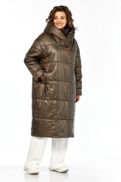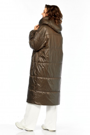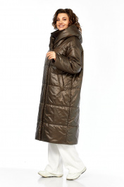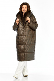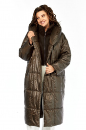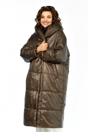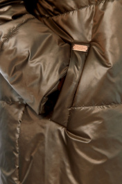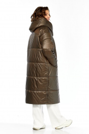 Пальто женскоеполуприлегающего силуэта со смещенной застежкой на кнопки. По переду прорезные карманы с листочкой. Рукав втачной одношовный с притачным манжетом по низу из отделочной ткани (довяз). Капюшон с объемный отделочной деталью по отлету, по горловине переда заложены складки. В качестве отделки используется манишка съемная с застежкой на тесьму-молнию (из отделочной ткани) фиксируется с помощью пуговиц и навесных петель-резинок на изделии. Используется утеплитель синтепон 200. Подходит под температурный режим до -10 градусов. Длина по спинке 116 см, длина рукава 54 см. 52 54 56 Длина изделия 116 116 116 Ширина изделия по линии груди 67 69 71 Ширина изделия по линии талии 67 69 71 Ширина изделия по линии бёдер 70 72 74 Ширина спины 54,5 55 55,5 Ширина плеча 21 22 23 Длина рукава 54 54 54 Ширина рукава 24 25 26