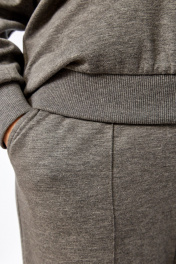 Комплект брючный( кофта+брюки+жилетка). Кофта прямого силуэта с притачным манжетом из отделочной ткани. Рукав покроя реглан с притачным манжетом по низу. В качестве отделки используется вышивка на центральной части переда. Брюки прямые. Верхний срез обработан поясом с резинкой. В боковых швах обработаны карманы. На передних половинках застрочены стрелки. Жилетка женская прямого силуэта с центральной застежкой на тесьму-молнию и отделочную планку на кнопки. Боковой шов смещенный на перед, в шве обработаны карманы. Воротник-стойка со складками по линии горловины. Жилетка двухсторонняя. Температурный режим до +5 градусов. Длина кофты по спинке 68 см, длина рукава+ширина плеча 76 см. Длина жилетки 68 см. Длина брюк 109-110 см