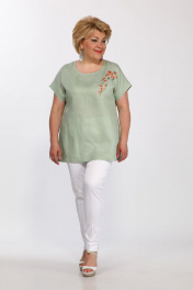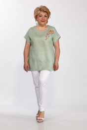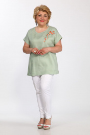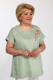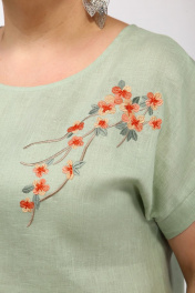 Зеленая ленющая блуза с вышивкой сакура Djerza 026