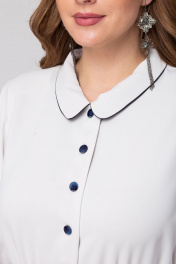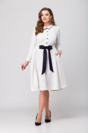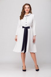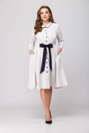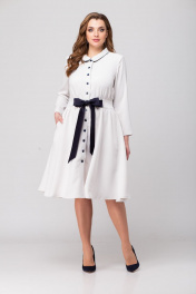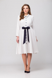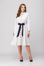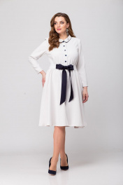 Платье женское отрезное по линии талии с поясом из отделочной ткани, который завязывается на бант. С центральнобортовой застежкой на 12 петель и пуговиц. Воротник стойка. Юбка «полусолнце», слегка присборена по талии. В боковых швах карманы. Рукав втачной одношовный 7/8.