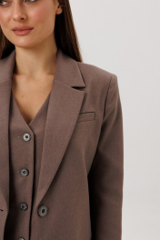 Жакет прямого свободного кроя. Характеристики: прямой свободный крой, подкладка, подплечники. Длина по спинке 75, длина рукава 61 см.