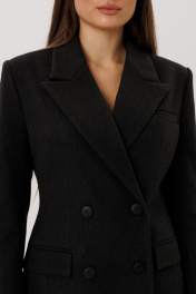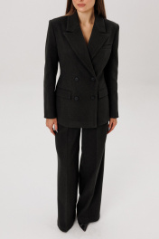 Жакет двубортный полуприлегающего силуэтта. Имеються функциональные карманы