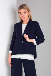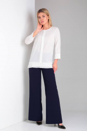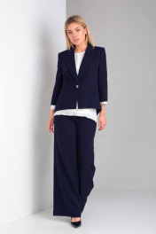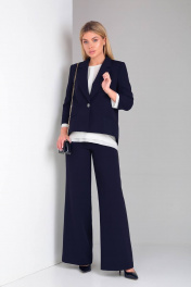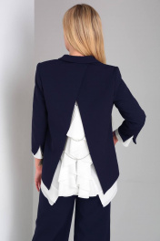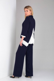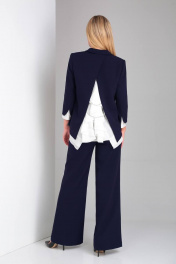 Элегантный брючный костюм с шифоновой блузкой и оригинальной спинкой DOGGI 2904 темно-синий
