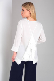 Элегантный брючный костюм в комплекте с шифоновой блузкой.Жакет полуприлегающего силуэта с воротником и лацканами классической формы, застежкой на 1 пуговицу. Особое внимание заслуживает экстравагантная спинка с имитацией запаха и серебристыми металлическими акцентами в виде цепочек, соединяющих две половинки отлетной спинки.Брюки прямого покроя расширены от линии бедра. Комфортная посадка брюк и подчеркивающий фигуру крой сделает их любимым предметом вашего гардероба.Костюм выполнен из материала модных цветов, не требующего особого ухода, пластичен и удобен в носке.Блузка-туника нежного молочного пастельного оттенка с шифоновыми рукавами. Блуза очаровывает своим красивым непринужденным полуприлегающим силуэтом, фигурной линией низа, и конечно же спинкой.Фантазийная спинка с шифоновыми вставками и воланами, красиво драпирующимися и являющимися одним из популярных трендов, шикарно смотрится как самостоятельно, так и в сочетании с эффектным разрезом на жакете. Жакет длина по спинке от точки основания шеи-67см, длина по полочке от точки основания шеи-59см, Длина рукава -46см Брюки Длина по бок. Шву-110 Блузка длина по спинке 42/44/46/48-64см,50р-65см длина рукава-49см параметры 42 44 46 48 50 Жакет обхват груди 88 92 96 100 104 обхват талии 90 94 98 102 106 обхват бедер 100 104 108 112 116 Брюки обхват талии 72 76 80 84 88 обхват бедер 92 96 100 104 108 ширина по низу 30.4 31 31.4 32 32.4 Блуза обхват груди 90 94 98 102 106 обхват бедер 98 102 106 110 114 длина по полочке 55 55 55 55 56