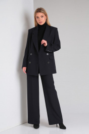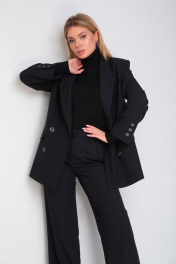 Черный свободный костюм из текстиля с брюками и жакетом DOGGI 2908 черный