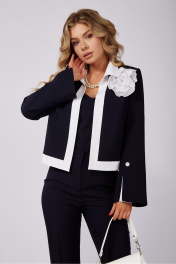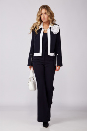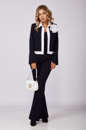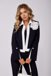 Настоящее произведение искусства!!! Уверенность, элегантность, этого костюма делает его идеальным выбором для важных деловых встреч, корпоративных мероприятий и незабываемых вечерних выходов. Изысканный комплект тройка выполнен из качественной стрейчевой ткани. Топ облегающего силуэта с рельефами по полочке, по спинке выточки и потайная молния в среднем шве. Брюки клёш от колена с за утюженым кантом, которые подчеркнут вашу утонченность и изысканность. Застежка молния по переду, по бокам прорезные карманы, пояс со шлевками и эластичной лентой по бокам. Жакет "BLAZER" без застежки на подкладке, рукав втачной расширенный к низу с декоративной шлицей. Изящность комплекту придает контрастная отделка воротника, планок, разреза шлицы и съемного декоративного цветка ручной работы подчеркнет вашу неотразимость и безупречный вкус. Длина жакета-53см Длина рукава-62см Длина брюк-110см Длина топа-48см