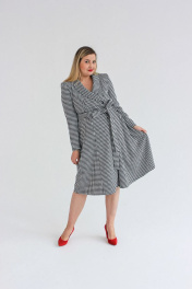 Платье ""Гусиная лапка"" в черно-белом — ваша тайная сила в каждом шаге. Вы ищете платье, которое: ✔️ выглядит дорого, ✔️ садится идеально, ✔️ не мнётся, ✔️ скрывает всё, что нужно — и подчёркивает всё, что важно? Это оно. Узор ""гусиная лапка"" в черно-белом — классика, которая никогда не стареет. Это не просто узор — это артистизм в ткани. Чёрный и белый — как тень и свет. Он визуально утягивает талию, делает фигуру стройнее, а образ — неповторимо элегантным. Силуэт ""на запах"" — мягко обхватывает талию, идеально скрывает живот, подчёркивает бёдра и создаёт женственный, но уверенный силуэт. Без корсетов. Без усилий. Без компромиссов. Состав: 35% вискоза + 60% ПЭ + 5% эластан — как вторая кожа: — не тянется и не теряет форму, — не мнётся после стирки, — дышит, но не просвечивает, — идеально садится на размер 48+ — даже если вы думали, что ""таких платьев не бывает"". Носите его: → В офис — с туфлями на каблуке и минимализмом. → На свидание — с золотыми серёжками и лёгким макияжем. → На праздник — и все будут думать, что вы заказывали у дизайнера. Это не просто платье. Это ваша новая уверенность. Это ваше оружие против сомнений. Это то, что вы надеваете, когда хотите чувствовать себя непобедимой. Нажмите ""Купить"" — и почувствуйте, как меняется ваш день. *Платье ""Гусиная лапка"" — для тех, кто знает: стиль — это не мода. Это выбор. Выбор быть собой — и выглядеть при этом безупречно.