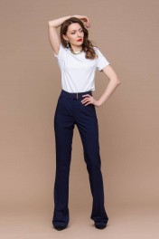 Ультрамодные брюки клеш от колена с высокой талией, которые дают идеальную посадку по фигуре и делают силуэт безупречным. Пояс брюк застегивается на 2 потайных крючка и 2 пуговицы, край пояса оформлен декоративным металлическим элементом, что делает акцент в модели. на задних половинках брюк обработаны карманы имитация. Параметры модели на фото: Ог-86, От-65, Об-93, рост 176 см + каблук 9 см, на ней размер 42-170.