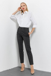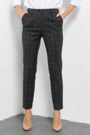 Классические брюки с высокой талией и ремешком Domna 12104 темно-серая_клетка