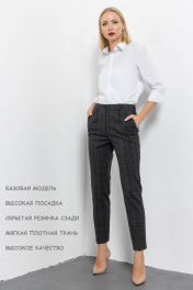 Женские классические зауженные брюки с высокой посадкой на притачном поясе. Резинка в задней части пояса обеспечивает идеальную посадку на любой тип фигуры. Пояс со шлевками, что позволяет регулировать талию с помощью ремешка, а так же дополнить им образ. На передних половинках брюк есть небольшие защипы складки, актуальные в этом сезоне. Карманы в боковых швах с отрезным бочком, а на задних половинках брюк - имитация прорезных карманов. Идеальная посадка на фигуре, модные актуальные цвета сезона позволяют выглядеть актуально и выразительно в любой ситуации. Это беспроигрышный вариант для Вашего неповторимого образа как в офисе, так и для особых случаев. Параметры модели на фото: Ог-88, От-68, Об-95, рост 176 см, на ней размер 44-170.