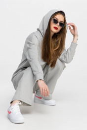 Спортивный костюм худи oversize и брюки палаццо серый Domna 16071 светло-серый
