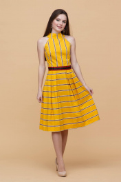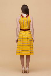 Женское модное платье длиной миди, без рукавов. Приталенная модель с расклешенной юбкой, элегантное платье для романтического легкого образа, вечернее коктейльное платье. Женская одежда весна-осень, нарядная повседневная модель, платье в офис, на вечеринку, в кафе, на свадьбу, для встреч с подругами. Универсальная базовая одежда для женщин и девушек. Складочки подчеркнут достоинства фигуры и скроют недостатки. Платье с широкой расклешенной юбкой, не сковывает движения, универсальная женская одежда, не стареющая классика. Платье отрезное по талии, перед лифа с нагрудной вытачкой из бокового шва. Спинка с талиевыми вытачками.