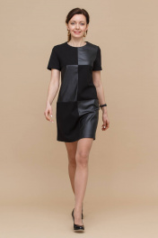 Демисезонное платье с вставками из экокожи Domna 5525 черный(170)