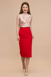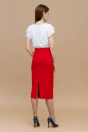 Красная юбка карандаш длины миди с разрезом и поясом Domna 71114 красный