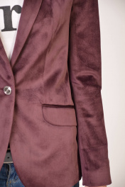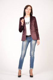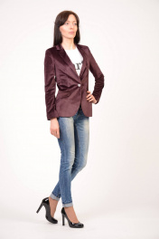Классический женский пиджак приталенного фасона, выполненный из благородной ткани - велюр . Это высококачественный материал, состоящий из смеси натуральных и синтетических волокон. Материал износостойкий, на долгие годы будет радовать вас, оставаясь как новым не один сезон. V-образный вырез горловины с лацканами. Длинные рукава, на каждом из которых имеется ряд пуговиц. Спереди два прорезных кармана с клапаном и застежка на пуговицу. Жакет смотрится изящно, ярко и стильно. Он станет надёжным и элегантным дополнением к вашему гардеробу.