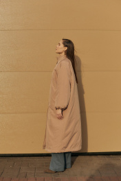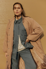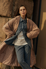 Утепленный плащ выполнен из плотной курточной ткани. Подчеркнуть талию можно с помощью пояса, а если хочется расслабленный образ - достаточно не применять его. По низу рукава- резинки с фиксаторами, позволяющие регулировать объем Длина изделия по спинке - 113см. Объем груди - до 96см, ОБ- до 100см. Длина рукава вместе с плечом -74см. Рассчитан на температурный режим от 0 до +10. Бережная стирка при 40 градусах