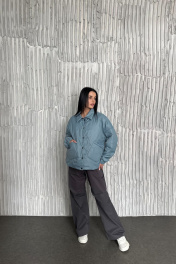 Куртка свободного силуэта: воротник рубашечного типа,застёжка на кнопках, два накладных кармана, манжеты на резинке для удобной посадки. Линия плеча спущена, что создаёт современный oversize-эффект. В качестве утеплителя используется легкий, гипоаллергенный - изософт 80 г/м² (пр-во Бельгия). Изделие рассчитано на температуру от +5 °C до +15 °C (в зависимости от индивидуальной чувствительности). Преимущества: Современный свободный крой, удобный в носке. Лёгкий утеплитель, сохраняющий тепло без лишнего объёма. Универсальная модель для города, офиса и прогулок. Отлично сочетается как с брюками и джинсами, так и с платьем. Бережная стирка при температуре 30 градусов. Длина изделия по спинке - 60, длина рукава включая плечо-75см