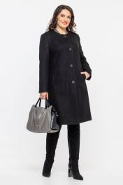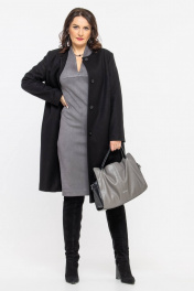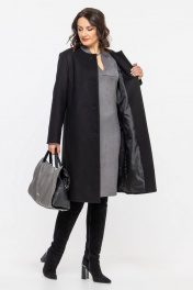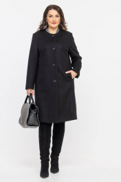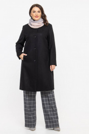 Пальто прямого силуэта из шерстяной ткани с классической горловиной Дорофея 402 черный - фото 1