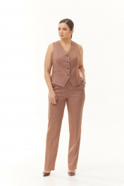 Жакет прямого силуэта. Горловина обработана воротником пиджачного типа. Рукава втачные длинные. Спереди прорезные карманы в рамку с клапаном. Жакет на притачной подкладке. Длина по спинке – 75 см, длина рукава 62 см. Отлично сочетается с брюками и жилетом из такого же материала. стильный жилет актуального кроя для создания современного образа. Жилет из костюмной ткани с хлопком, на подкладке, полуприлегающего силуэта с центральной застежкой на петли-пуговицы. Спинка со средним швом. Отлично сочетается с брюками и жакетом из такого же материала. Брюки классические, слегка зауженные книзу. Верхний край брюк обработан притачным поясом, застегивающимся на крючок, молнию и потайную пуговицу. На поясе шлевки для продевания ремня или пояса. Спереди боковые наклонные карманы. Длина брюк по боковому шву – 108 см. Отлично сочетается с жакетом и жилетом из такого же материала.
