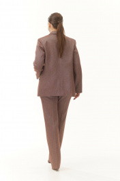 Жакет прямого силуэта. Горловина обработана воротником пиджачного типа. Рукава втачные длинные. Спереди прорезные карманы в рамку с клапаном. Жакет на притачной подкладке. Длина по спинке – 75 см, длина рукава 62 см. Отлично сочетается с брюками и жилетом из такого же материала. стильный жилет актуального кроя для создания современного образа. Жилет из костюмной ткани с хлопком, на подкладке, полуприлегающего силуэта с центральной застежкой на петли-пуговицы. Спинка со средним швом. Отлично сочетается с брюками и жакетом из такого же материала. Брюки классические, слегка зауженные книзу. Верхний край брюк обработан притачным поясом, застегивающимся на крючок, молнию и потайную пуговицу. На поясе шлевки для продевания ремня или пояса. Спереди боковые наклонные карманы. Длина брюк по боковому шву – 108 см. Отлично сочетается с жакетом и жилетом из такого же материала.