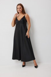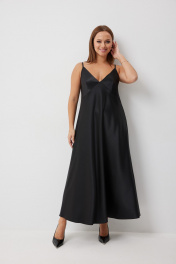 Длинное черное платье- комбинация простого кроя, на тонких бретелях выглядит элегантно и лаконично. Регулируемая длина бретелей делает платье универсальным для любого роста. Гладкая матовая фактура ткани подчеркивает достоинства фигуры, придавая образу прекрасный вариант для романтичного и ютного вечера