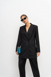 Жакет демисезонный синий из шерсти и текстиля Elema 1К-12162-1-170 синяя_полоска