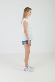 Блузка женская прямого силуэта. По переду печать. По низу боковых швов разрезы