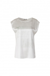 Белая атласная блуза с разрезами и печатью Elema 2К-12491-1-170 белый/олива_принт