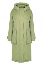Зеленое пальто из плащёвой ткани с капюшоном и классическим силуэтом Elema 5-13036-1-170 полынь