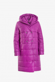 Пальто женское плащевое утепленное (двусторонняя фигурная стежка, синтепон 150гр ), прямого силуэта, без подкладки с окантованными швамии срезами, с капюшоном. Пальто однобортное с застежкой на петли и пуговицы. Рукава длинные, двухшовные с отложной манжетой. Карманы в рельефе переда. Утеплитель: ISOSOFT 150г/м2 100%ПЭ