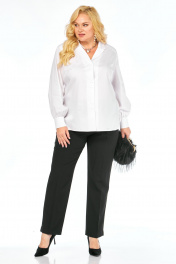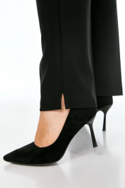Брюки классические, слегка зауженные к низу. Пояс притачной, застежка на молнию и петлю, пуговицу. Длина брюк по боковому шву 100 см.