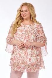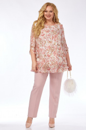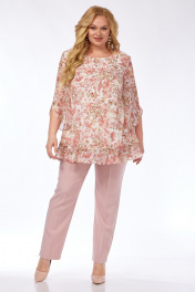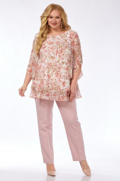 Идеальное решение на летний период, 2-х предметный комплект, состоит из блузы и брюк. Изделие позволит чувствовать себя ярко и уверенно. Воздушная блуза, свободного кроя, выполнена из принтованного шифона, что придает уникальность стилю своими красками. На полочке нагрудные вытачки, вырез горловины аккуратной округлой формы. Рукав втачной, свободный. Блуза на подкладке. Брюки слегка зауженные к низу. Пояс притачной, частично на резинке.