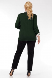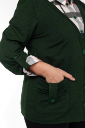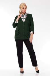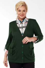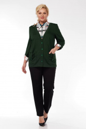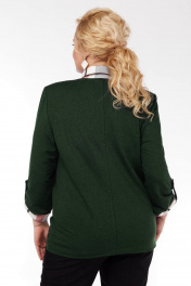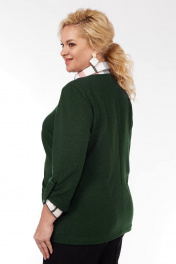 Имитация рубашки под джемпером - это отличный вариант практичной и удобной одежды. Джемпер прямого силуэта, комбинированный, выполнен из мягкого трикотажа и блузочной ткани. Полочка с нагрудными вытачками, накладными фигурными карманами, декорированной патой. Стояче-отложной воротник блузки хорошо смотрится с V-образным вырезом горловины. Рукав втачной, одношовный, с отложной манжетой из отделочной ткани. Пата на рукаве позволяет регулировать его длину.