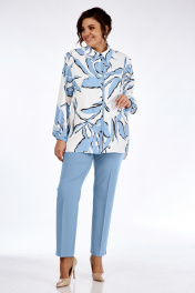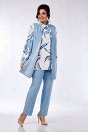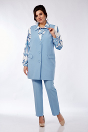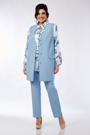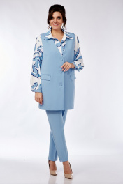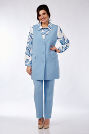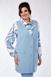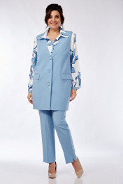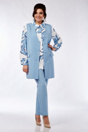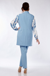 Комплект блуза брюки жилет из вискозы деловой стиль Элль-стиль 2274 голубой/белый