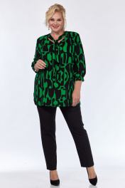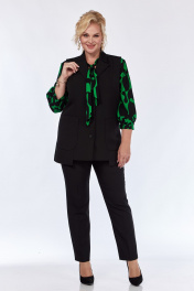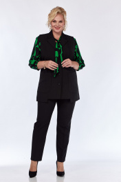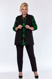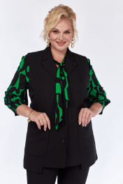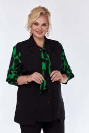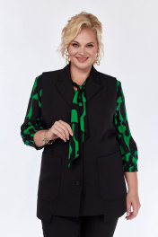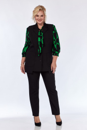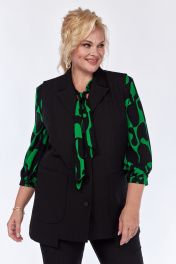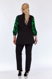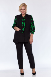 Комплект: блуза, брюки и жилет из вискозы с принтом и карманами Элль-стиль 2361 черный_зеленый_принт