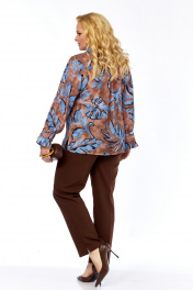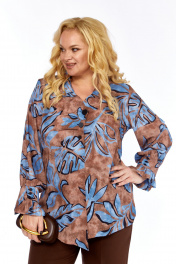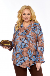 Блуза Элль-стиль 2398/2а коричневый_голубой_принт
