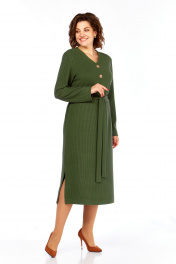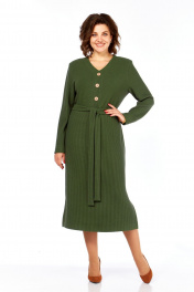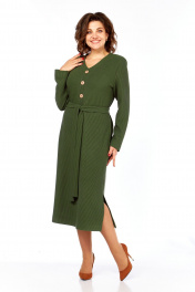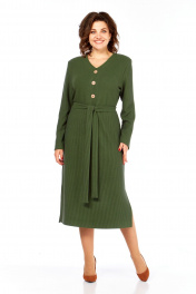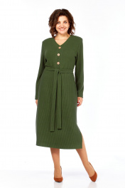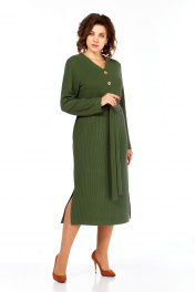 Образ, который поможет создать гармоничный и стильный внешний вид. Удобное платье полуприлегающего силуэта из трикотажного полотна, эффектно подчеркнет линии фигуры. По центру до уровня талии, пришивные декоративные пуговицы. V-образный вырез делает акцент на грудь. Рукав втачной. В боковых швах предусмотрены разрезы. В комплекте прилагается съемный пояс из основной ткани.