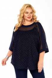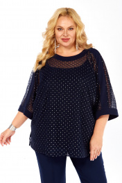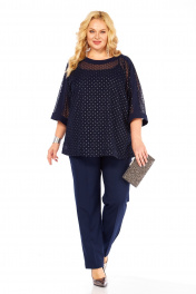 Праздничная элегантная блузка полуприлегающего силуэта, выглядит эффектно, прекрасно подойдет для вечерних мероприятий. Горловина аккуратной округлой формы. Рукав втачной, свободный, длина 7/8. В боковых швах предусмотрены разрезы. Топ входит в комплект.