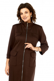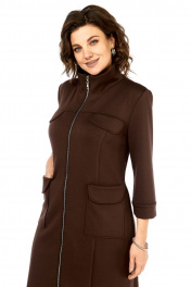 Женственное платье, которое считается универсальным и уместным как для офиса, так и для встречи с друзьями. Модель полуприлегающего силуэта. По переду отрезная кокетка в области груди оформлены клапаны, ниже накладные функциональные карманы с клапаном. По переду расположена декоративная функциональная застежка- молния, которая служит и как элемент дизайна. Горловина на отрезной стойке. Классический втачной рукав, низ обработан притачной манжетой. Спинка на кокетке со средним швом и выточками.