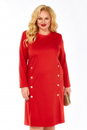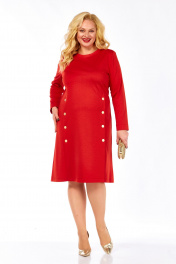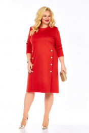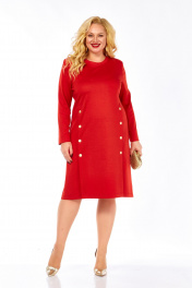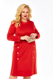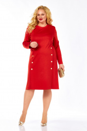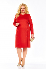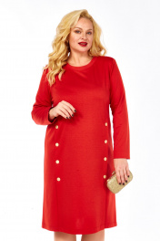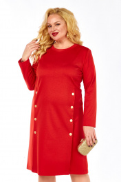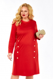 Стильное платье полуприлегающего силуэта выполнено из трикотажной ткани, контрастные декоративные пуговицы визуально создают красивый акцент. Фасон интересен тем, что модельные линии, как нельзя лучше подчеркивают плавные изгибы женской фигуры. Вырез горловины классический овальный. Рукав втачной, полной длины.