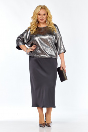 Блуза, юбка Элль-стиль 2449 серебро_серый